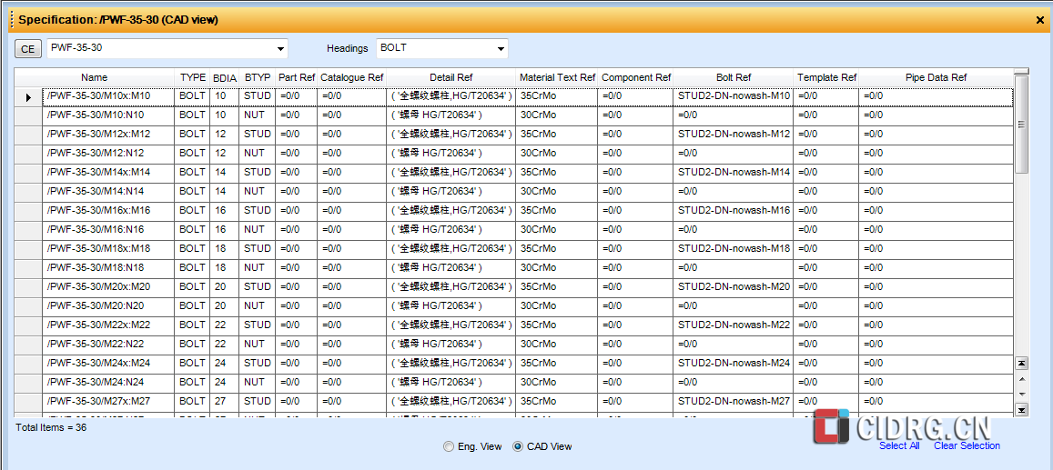 - PDMS螺栓等级库创建